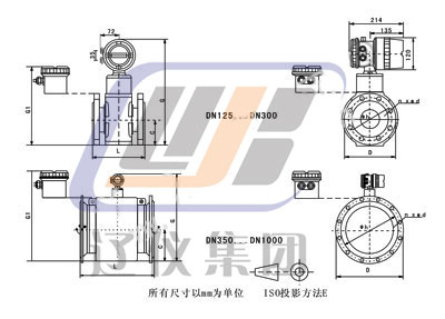 2)接地方式為接地電極(標準配置)時,DN125-1000口徑,尺寸L不變。